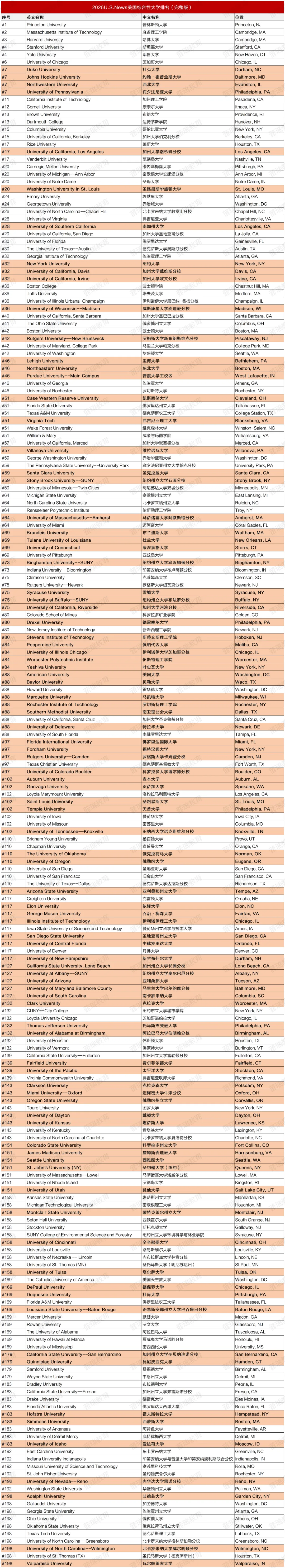 2026 U.S.News全美综合性大学排名发布(完整版)