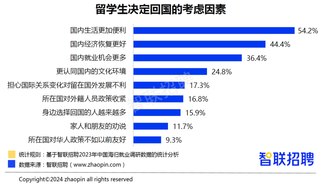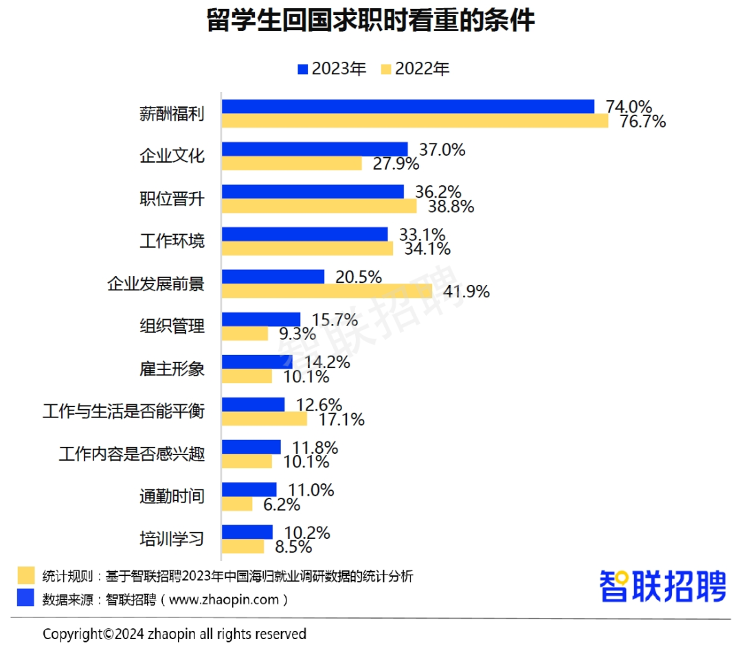关于回国求职看重的条件,2023年留学生依然最看重: