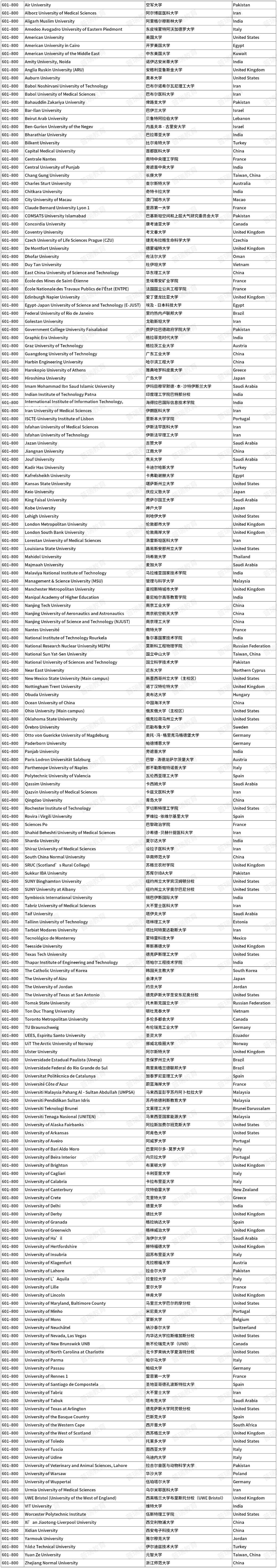 本次参与排名的高校数量再创新高,全球共有2191所高校上榜,较2025年增幅约5%。这是排名史上第二次突破两千所上榜院校的规模,涵盖的国家/地区总数维持在115个。