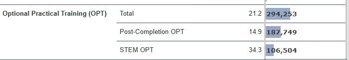 此外,还可以看到,2024/2025学年,有294,253名学生拿到了OPT实习机会。而去年仅有242,782名学生拿到OPT实习机会。相比去年,今年的数据同比增长21.2%,涨幅明显。