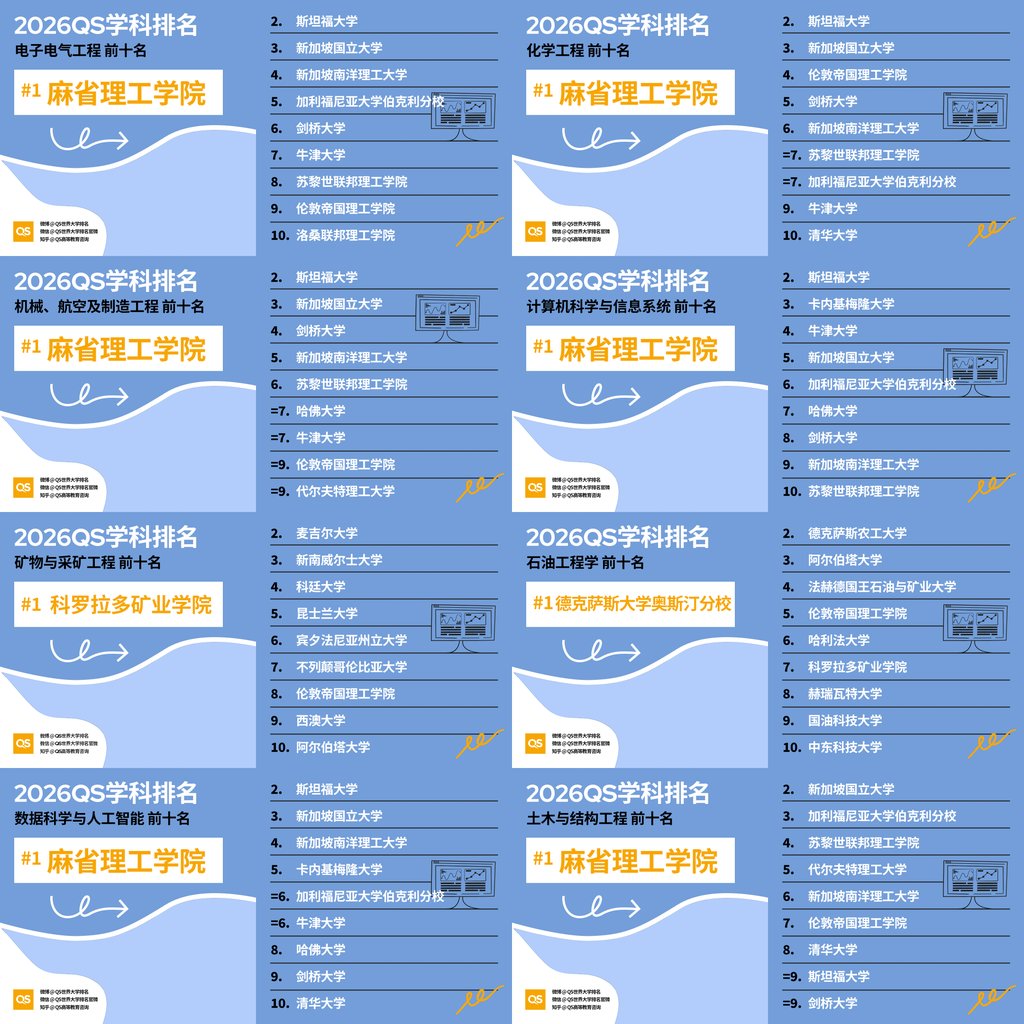 浏览:44 编辑:小d 来源:无北京时间 2026 年 3 月 25 日 18 点,国际高等教育研究机构QS Quacquarelli Symonds发布了第16版QS世界大学学科排名。