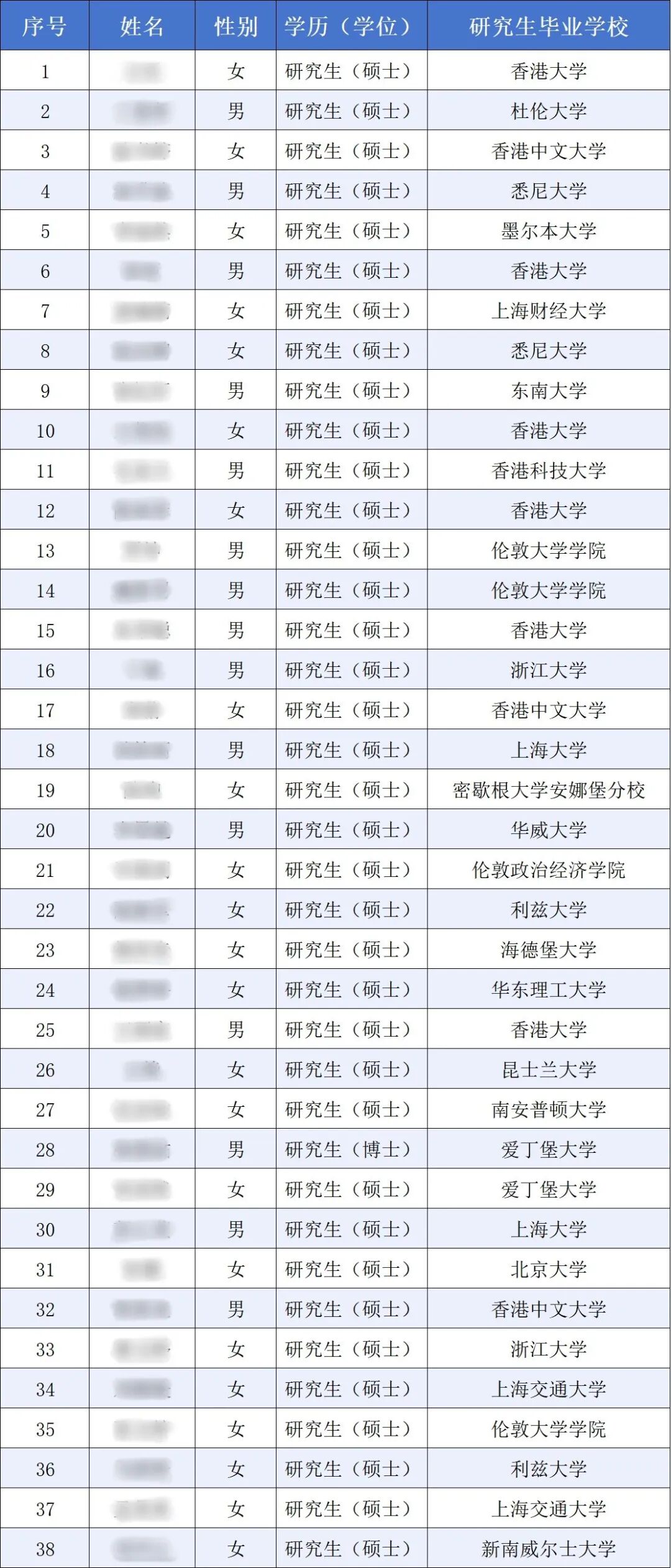 从2025年青浦区储备人才拟录用公示名单不难看出,海外留学生占比较高,入选者大多毕业于全球知名院校!